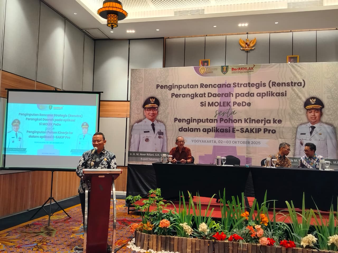 Pemerintah Kabupaten Tabalong melalui Bapperida Kabupaten Tabalong telah menyelenggarakan kegiatan Penginputan Rencana Strategis (Renstra) Perangkat Daerah pada Aplikasi Si Molek PeDe serta Penginputan Pohon Kinerja ke dalam Aplikasi E-SAKIP Pro, dengan bertempat di Aula pertemuan éL Hotel Yogyakarta pada 2 dan 3 Oktober 2025. Peserta kegiatan terdiri dari Kepala Subbagian Perencanaan beserta staf dari dinas atau badan, serta perwakilan dari kecamatan dan unit pelaksana teknis seperti RSUD H. Badaruddin. Acara ini juga dihadiri Bupati Tabalong yang secara resmi membuka kegiatan penginputan yang berlangsung 2 hari. Narasumber kegiatan berasal dari Pusat Pengembangan Sistem dan Manajemen Pembangunan (Pusbangsim) yang memberikan pendampingan teknis terkait penggunaan kedua aplikasi tersebut.